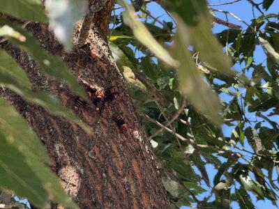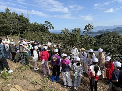 始まりは、13年前。ミカン畑やビワ畑などの耕作地を荒らすイノシシに、ドングリやクリをたくさん食べることができる場所を作ってあげたいという思いからできた場所だそうです。まさに共生を目指すための取組。今ではたくさんのイノシシが、この森で食事をしていることが分かりました。