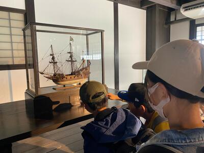 出島では、班ごとに出島の中を見学し、全体でクイズを出し合う活動を行いました。出島には、たくさんの観光客が来ており、外国の方とコミュニケーションをとったり、自分たちで時間の使い方を考えながら行動したりしました。実際に行かないと味わえない出島の雰囲気や、建物の様子に子どもたちは大満足でした。