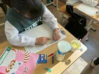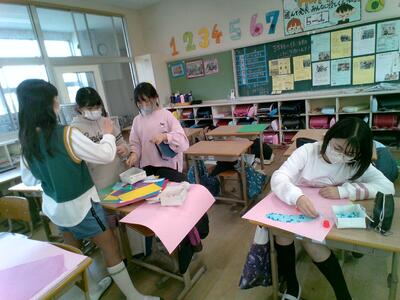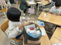 1年生へのプレゼントづくりでは、「1年生が喜ぶプレゼント」「5年後(1年生が6年生になった時)の参考になるようなプレゼント」「学校で用意できる材料を使い、決められた時間の中で完成させることができるプレゼント」という三つの課題を解決する必要がありました。1年生との交流の中で相手の好きな物を探ったり、自分たちの5年前の気持ちを振り返ったり、必要な材料の種類と量を考えたりしながら、一生懸命にプレゼントを創りました。