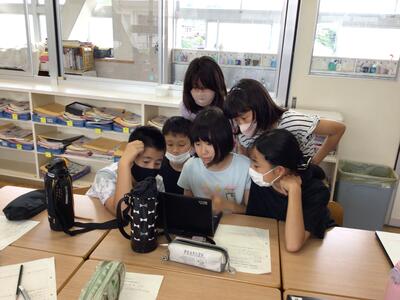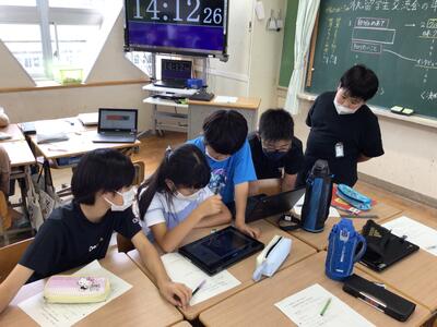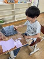 折り紙では、1人1台支給されたICT端末で作り方を見ながら、通常の大きさの折り紙だけでなく通常の4分の1の大きさの折り紙を使用して指先の巧緻性を高める活動を行いました。