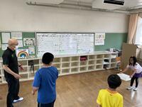 他にも色んな大きさのボールを取る練習を行いました。跳ねて不規則な動きをするボールを目で追い、体を動かして取るというたくさんの動きがあって苦戦していましたが、回数を重ねるごとに上手になっています。慣れてきたらボールの大きさを変えたり、手ではなくコップや箱で取るなど条件を変えており、毎回楽しそうに活動をしています。