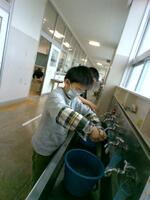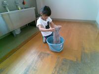 週2回、朝の時間は掃除の時間になっています。毎日使うふたば学級・廊下を一生懸命掃除をしています。雑巾絞りも上手になりました。長い廊下の雑巾がけも隅々まで拭き上げています。