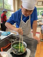 お湯を沸かしてお茶を入れたり、小松菜を茹でたりし、自分で作ったお茶やおひたしを美味しそうに食べていました。もちろん片付けも上手にできました。