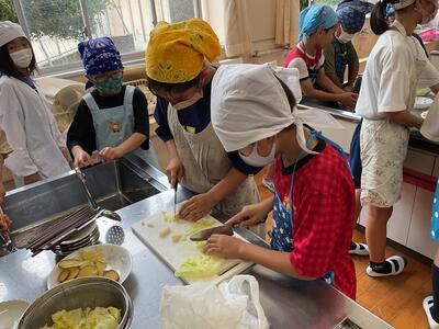 高学年の仲間入りをした5年生。初めての調理実習も頑張りました。